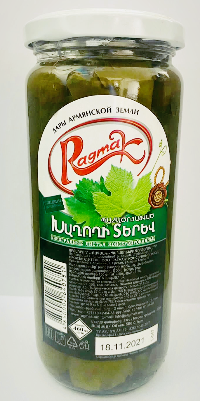 Состав: свежие листья винограда, соль, лимонная кислота, вода питьевая.